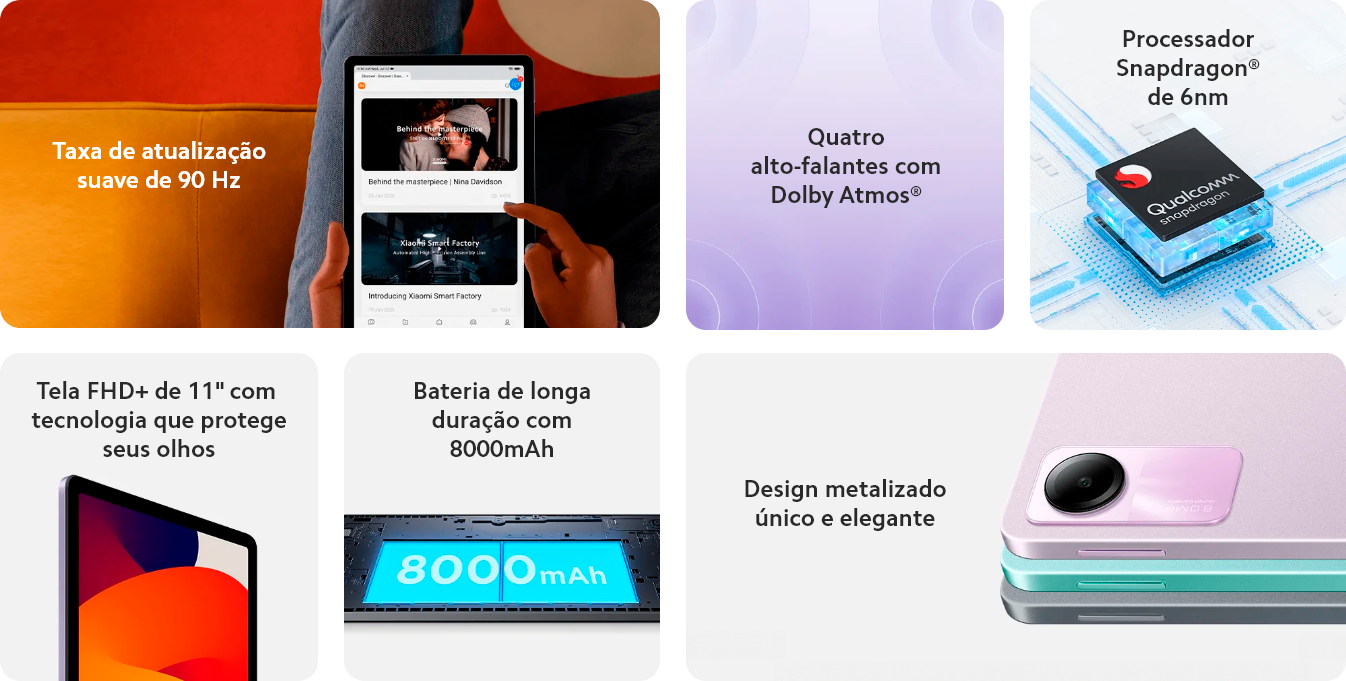1x Tablet Redmi Pad SE, 1x Carregador USB-A de 10W (padrão brasileiro), 1x Cabo USB-C, Ferramenta ejetora do cartão SD, Manual e Termo de Garantia